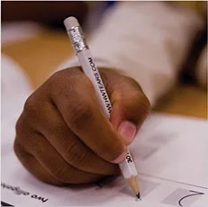 The grip I teach most often is a “tripod grip, ” which means you grip the pencil with three fingers: the thumb, first or index finger, and middle finger. An ideal grip involves the child pinching the pencil between the thumb and first finger, using the middle finger as a stabilizer under the pencil. The other two fingers of the hand should not be touching the pencil. If they seem to constantly be grasping the pencil, try having your child hold a very small object like a tiny pencil eraser with the ring and smallest finger while writing. This reinforces the habit of not using these fingers to help hold the pencil.